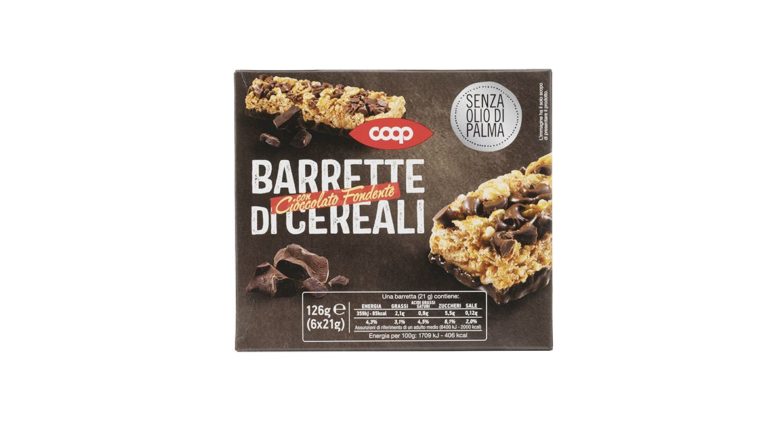 Coop di cereali con cioccolato fondente: 1,89 € per 6 barrette da 21 g l’una (15 €/kg).