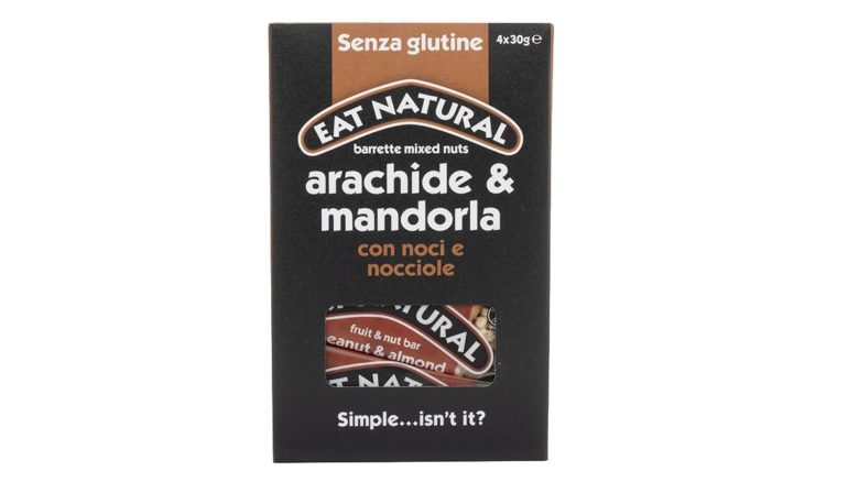 Eat Natural di arachide & mandorla con noci e nocciole: 3,20 € per 4 barrette da 30 g l’una (26,67 €/kg).