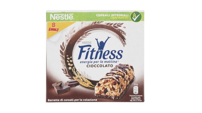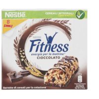 Nestlé Fitness di cereali con frumento integrale e cioccolato: 1,55 € per 8 barrette da 23,5 g l’una (8,24 €/kg).