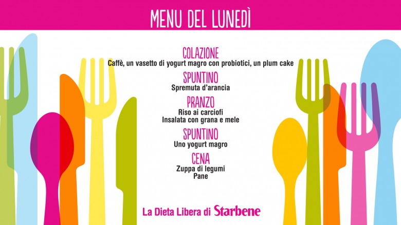 Per imparare a nutrirti in modo sano ed equilibrato Starbene ti propone la Dieta Libera. Messa a punto dalla dottoressa Carla Lertola, è versatile e facilissima da seguire. Ogni giorno su Facebook trovi il menu del giorno. Se hai perso quelli della settimana dal 9 al 15 gennaio 2017, puoi recuperarli qui.
