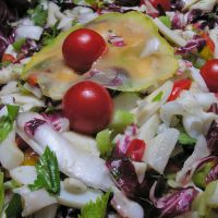 Insalata di pasta con pollo e verdure di stagione