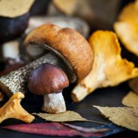 Pasta integrale con funghi, zucca e speck a dadini, verdure al vapore