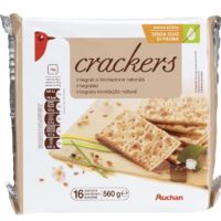 Il primo ingrediente è la farina di frumento, seguita da farina integrale di frumento (45%, comunque ricostituita da farina di cruschello). L’olio di girasole alto oleico è il 9,5%. Questi cracker sono piuttosto chiari (come è giusto che sia, vista la quota bassa di cruschello), sono sottili e in bocca denotano una buona friabilità. Il sapore è piuttosto anonimo, nonostante la presenza dell’aroma naturale di oliva, e non troppo salato (e questo è sicuramente un pregio).