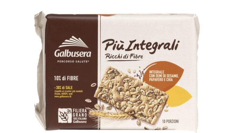 Le farine di cereali (non tutte integrali) rappresentano l’87% del peso, la segale soffiata (presente sulla superficie dei cracker) il 12%. Tra gli ingredienti figurano poi olio di girasole alto oleico, inulina, glutine, malto d’orzo, semi di sesamo, papavero e chia, lievito madre e lievito di birra. Come additivi: bicarbonato (correttore di acidità) ed estratto di rosmarino (antiossidante). In bocca la friabilità è molto buona. E il sapore è ricco.
