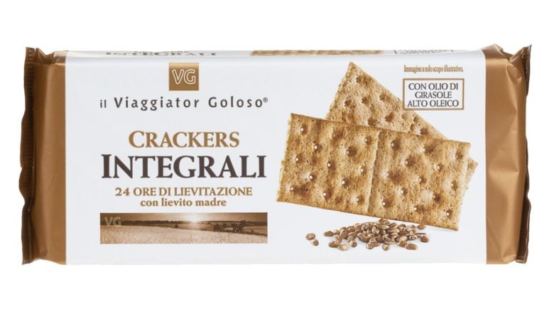 Il primo ingrediente di questi crackers è la farina di frumento. C’è poi un’aggiunta di cruschello (pari al 6% del peso). L’olio di semi di girasole alto oleico è l’unico grasso utilizzato. Come lievito sono presenti sia quello madre sia quello di birra. Risultano poi abbastanza spessi, con un profumo piuttosto caratteristico, e in bocca rivelano una buona friabilità. Il sapore è un pochino anonimo, ma anche (aspetto positivo) non troppo salato.