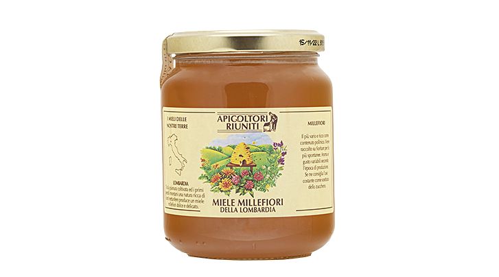 Di produzione italiana, viene raccolto sui monti della Lombardia (anche se la società cooperativa ha sede in Piemonte, ad Asti). È contenuto in un vasetto di vetro con tappo a vite e all’apertura mostra una presenza di schiuma sulla superficie assolutamente trascurabile e non indice di fermentazione. È fluido ma non troppo, di colore giallo ambrato.