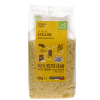 Il giudizio. Sono trafilate al bronzo e preparate con semolato di grano duro bio di provenienza italiana. Il semolato, che viene ottenuto macinando i chicchi dopo l’estrazione della semola, contiene più fibre. Le stelline misurano 5 mm e dopo 6 minuti di lessatura (ne sono consigliati 5-6 sulla confezione) mantengono una buona consistenza. Cotte soltanto in acqua, rivelano un gusto abbastanza intenso e gradevole.