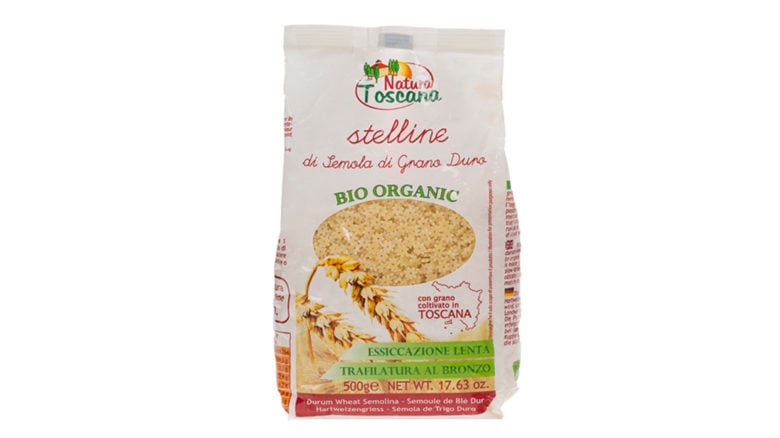 Il giudizio. Realizzate con semola di grano duro biologico coltivato in Toscana, sono essiccate lentamente e trafilate al bronzo. Il colore è giallo chiaro e il diametro è di 5 mm. Dopo 5 minuti di lessatura la consistenza risulta molto buona: le stelline si rigonfiano adeguatamente senza spappolarsi e assorbono bene il brodo. Il sapore è gradevole e caratteristico anche dopo la semplice cottura in acqua.
