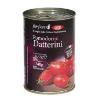 Coop. Fiorfiore Pomodori Datterini: 1,12 € il barattolo da 400 g - 240 g peso sgocciolato (4,66 €/kg sgocciolato).
