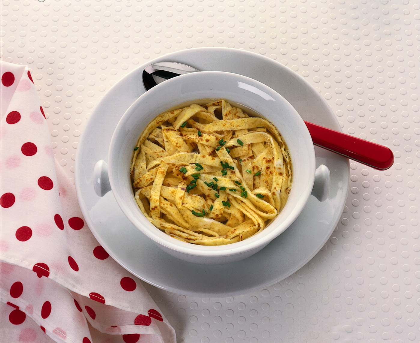 La ricetta della crespella in brodo è tipica della cucina tedesca e austriaca, anche se poi si è diffusa anche in molti altri paesi, dalla Svizzera all’Ungheria passando per l’Italia. Il brodo utilizzato nella preparazione è un brodo di carne, in genere di manzo ma a volte anche di pollo. Se vuoi personalizzare il piatto, prepara la tua crespella in brodo aromatizzando il preparato a base di uovo con un pizzico di noce moscata, oppure – riprendendo una versione della ricetta diffusa in Francia – con un trito di erbe aromatiche.