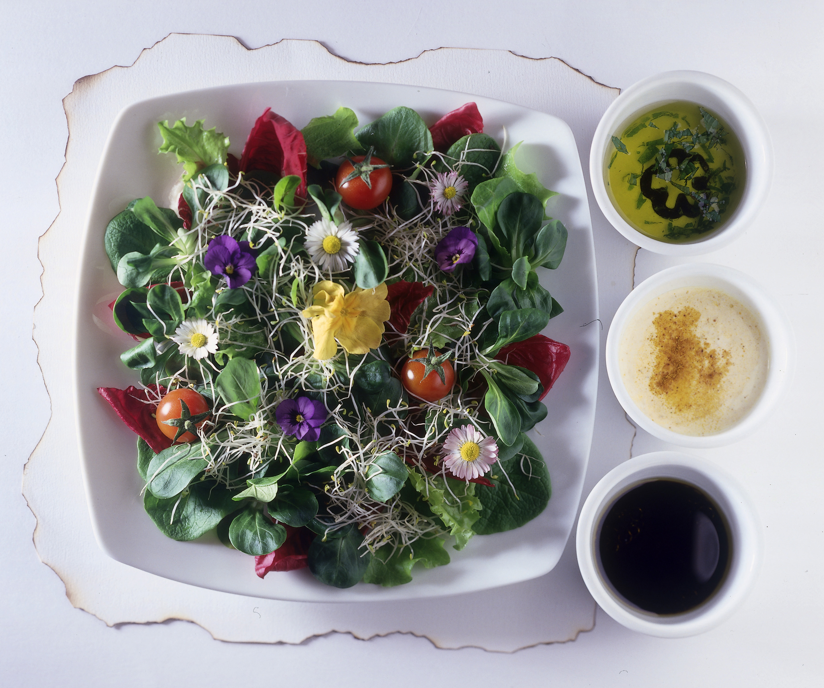 5) Porta in tavola il tuo giardino fiorito con le salsine a parte, in modo che ogni ospite possa condire l’insalata a piacere.