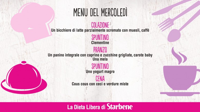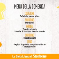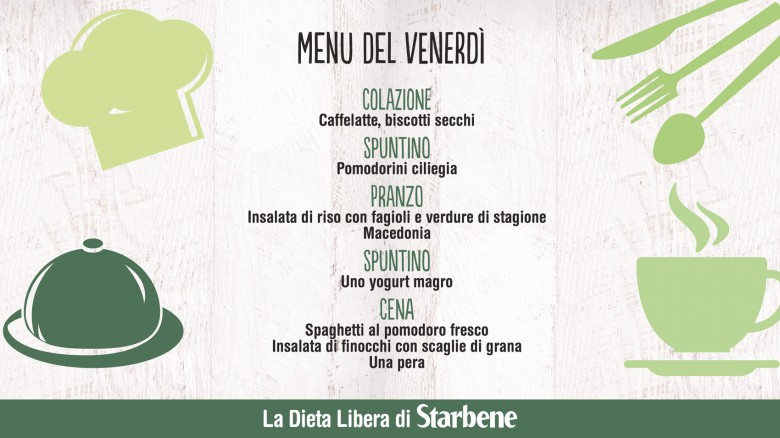 Per imparare a nutrirti in modo sano ed equilibrato Starbene ti propone la Dieta Libera. Messa a punto dalla dottoressa Carla Lertola, è versatile e facilissima da seguire. Ogni giorno su Facebook trovi il menu del giorno. Se hai perso quelli della settimana dal 5 all'11 dicembre 2016, puoi recuperarli qui.