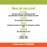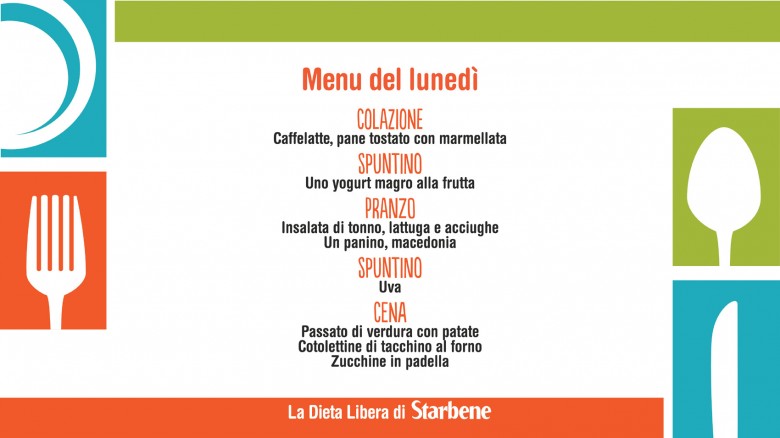 Per imparare a nutrirti in modo sano ed equilibrato Starbene ti propone la Dieta Libera. Messa a punto dalla dottoressa Carla Lertola, è versatile e facilissima da seguire. Ogni giorno su Facebook trovi il menu del giorno. Se hai perso quelli della settimana dal 26 settembre al 2 ottobre 2016, puoi recuperarli qui.