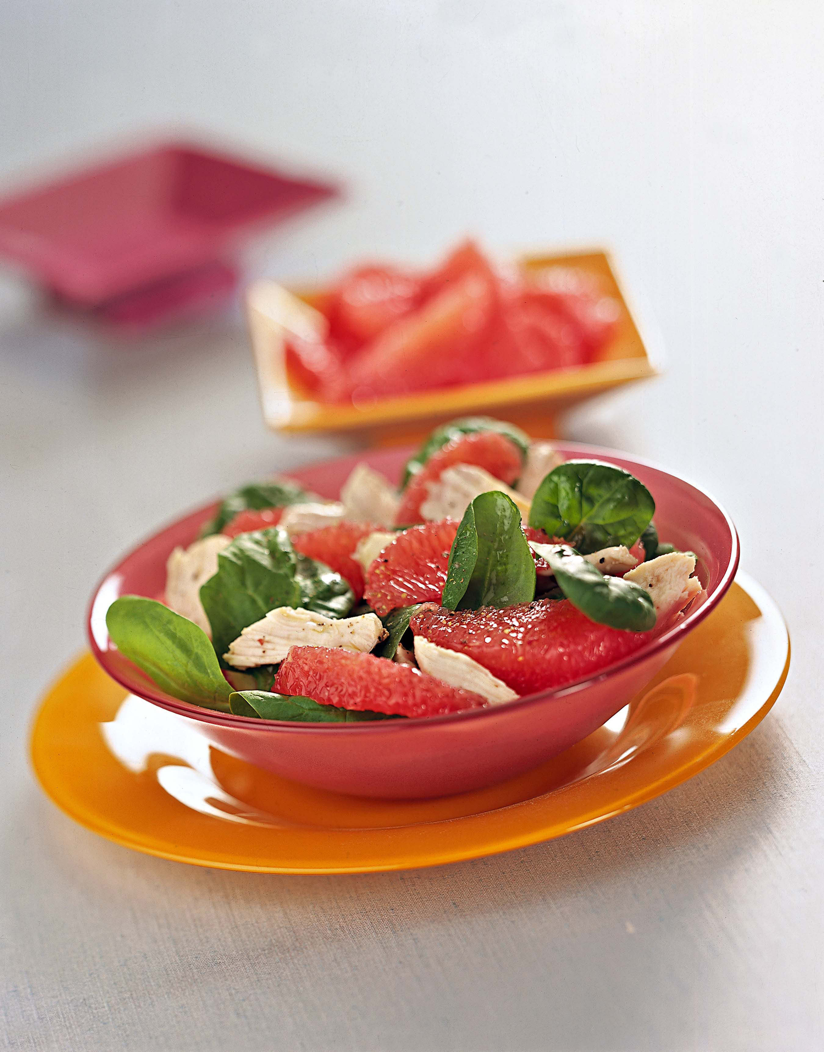 Con l’aggiunta della carne di coniglio a fettine, la ricetta dell’insalata di pompelmo è un secondo completo, alleato della linea