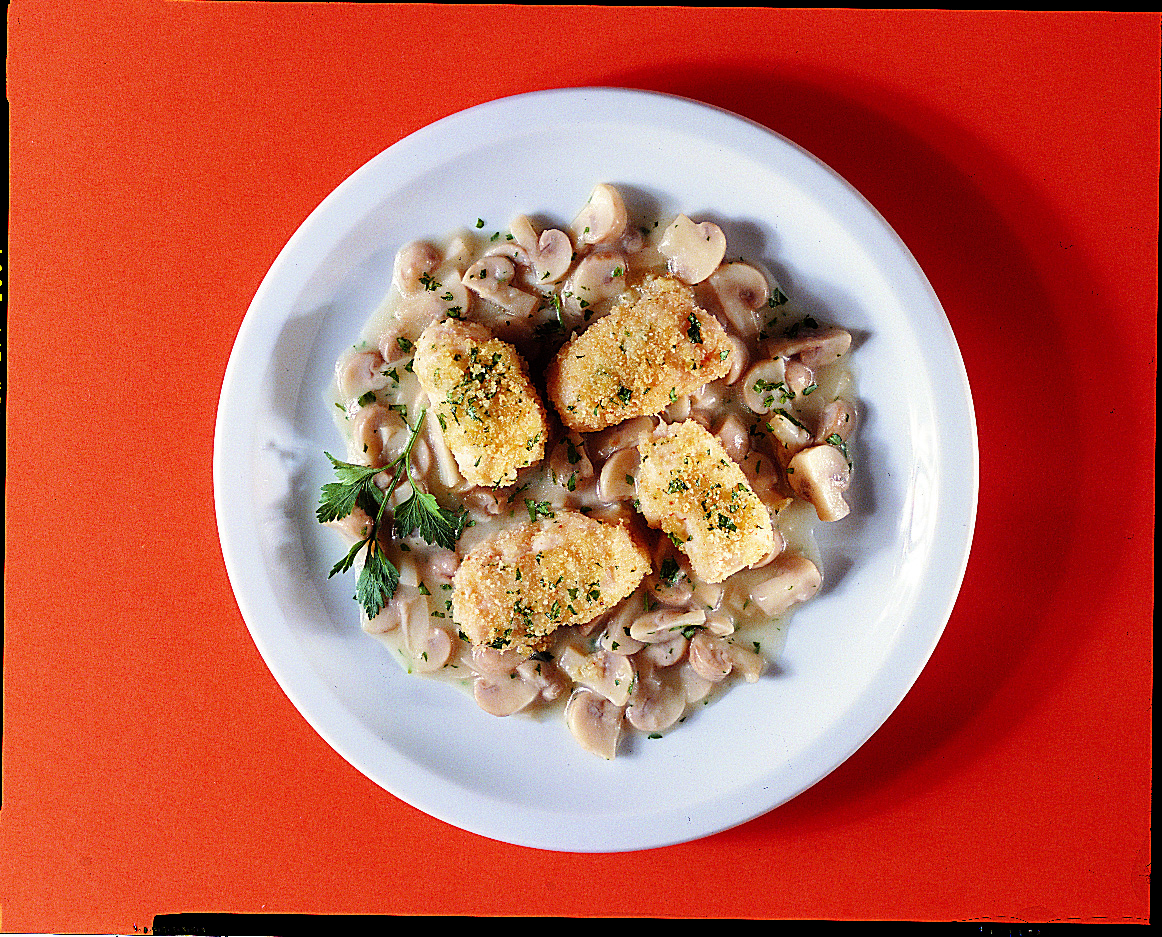 La morbidezza della sogliola si unisce al gusto delicato degli champignon. Completa il piatto la gratinatura croccante e profumata al prezzemolo