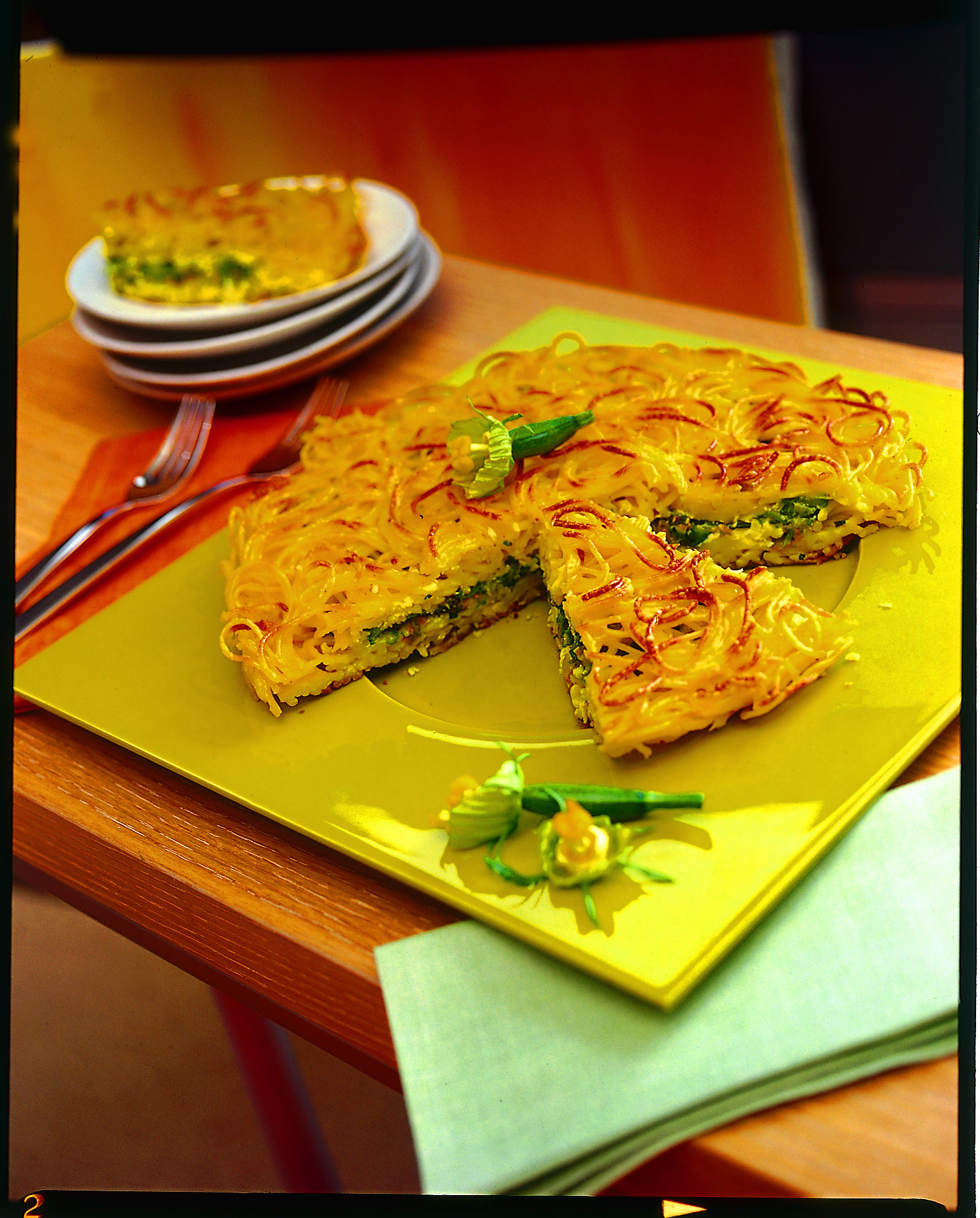 PREPARAZIONE DELLA TORTA DI SPAGHETTI CROCCANTI