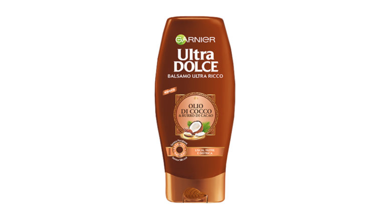 Ultra Dolce Balsamo crema al cacao e olio di cocco per capelli lisci di Garnier, 2,41€, 200 ml. Nella grande distribuzione.
