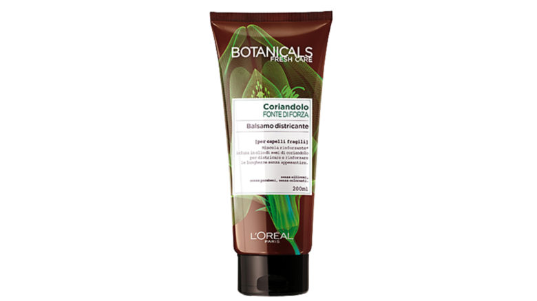 Botanicals Fresh Care Balsamo districante per capelli fragili al coriandolo di L’Oréal Paris, 7,99€, 200 ml. Nella grande distribuzione.