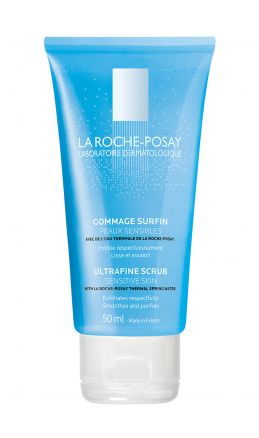 L’esfoliante ultradelicato È studiato per purificare e levigare le pelli più sensibili e soggette a facili arrossamenti. Si applica una noce sul viso umido, si massaggia senza strofinare e si risciacqua. Gommage Surfin di La Roche Posay (16,50 €, 50 ml).