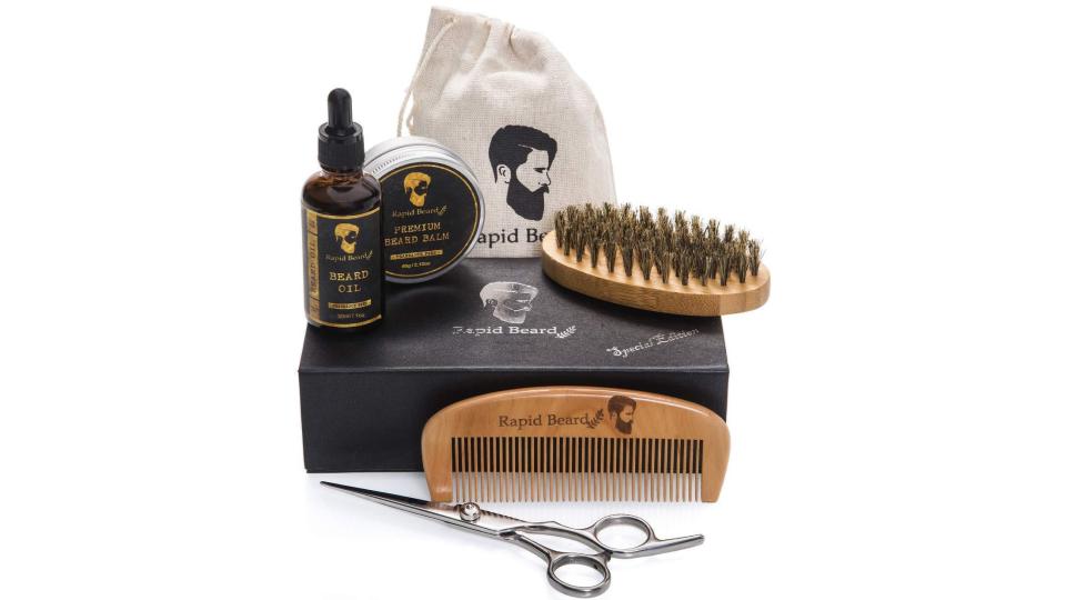 Preparare, tagliare, modellare e disciplinare barba e baffi non è mai stato più facile. Questo kit di "rapid beard" contiene la perfetta combinazione di forbici per barba da barbiere in acciaio inox extra affilate, spazzola di 100% setole di cinghiale, olioammorbidente e modellante e balsamo disciplinante anche per i baffi. Sia l'olio che il balsamo sono perfetti per tenere i tuoi peli e la pelle del viso idratati, inumiditi, morbidi come la seta, sani e in ordine. Inoltre l'ammorbidente è in grado di eliminare prurito e forfora mentre le setole di cinghiale naturali aiutano a distribuire l’olio, migliorare la struttura di capelli e barba, styling, messa in piega, lisciatura e condizionamento.