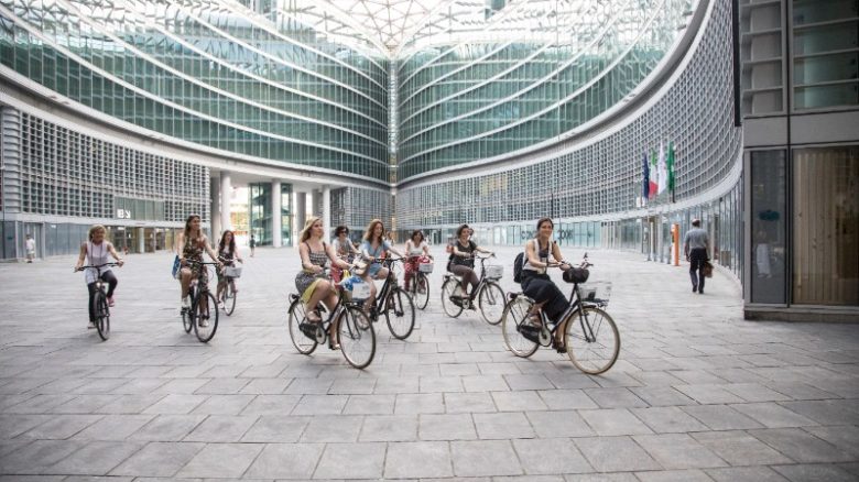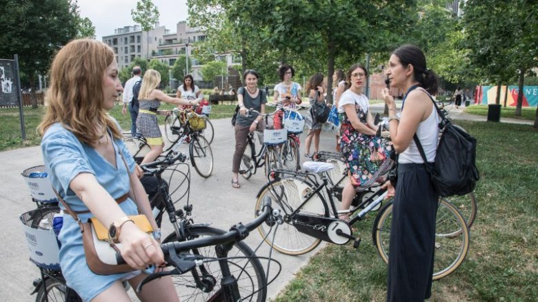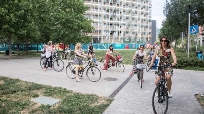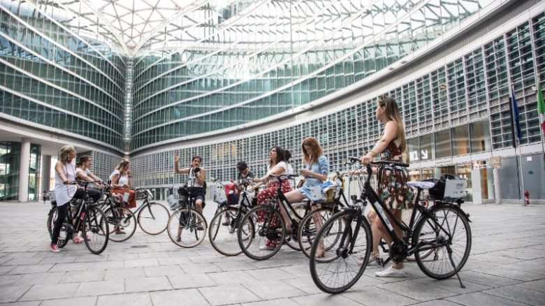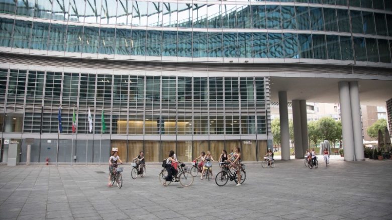 La terza tappa di #Aperibici ha toccato Palazzo Lombardia, sede della Giunta regionale lombarda, mentre per la quarta si è tornati verso il Bosco Verticale ma per fermarsi alla Biblioteca degli Alberi, estesa su 9 ettari di terreno (è la terza area verde del centro milanese). Un parco che ospita circa 500 alberi di 22 specie diverse, 35 mila metri quadrati di prato e quasi 135 mila tra siepi, arbusti, piante acquatiche, ornamentali e rampicanti.