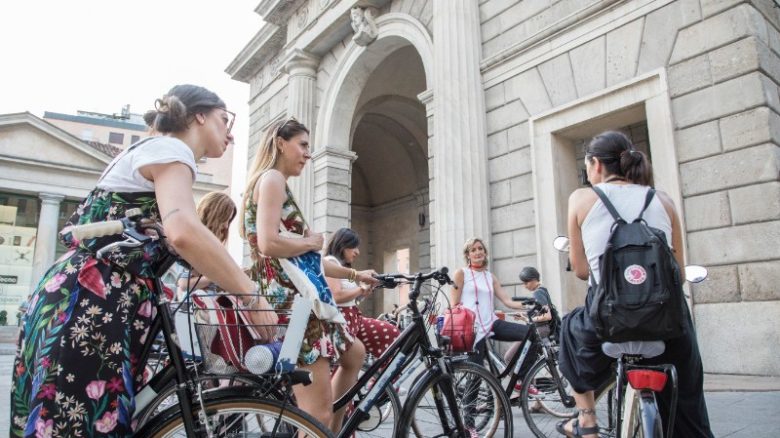 La penultima tappa è stata corso Como, storica strada del divertimento milanese, lungo la quale si è pedalato per l’arrivo di #Aperibici: Porta Garibaldi, una delle sei porte delle mura edificate nel Seicento dagli spagnoli, durante il loro dominio cittadino.