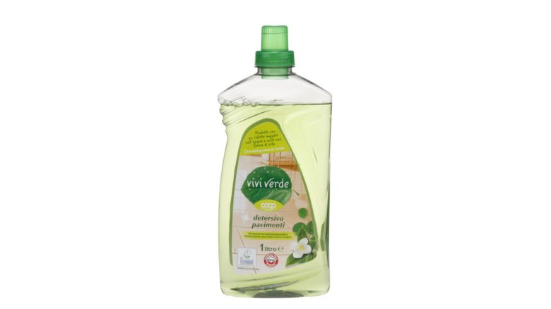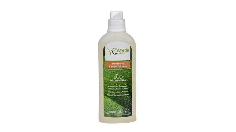Concentrato, produce un po’ di schiuma, ma lascia il pavimento molto pulito e lucido e ha una profumazione fresca e piacevole, agli agrumi. È certificato Ecolabel e Vegan ok.