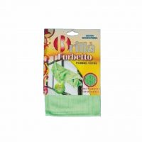 Il panno in microfibra composta per il 70% da viscosa e per il 30% da poliestere ha un’ottima resa quando è umido. Realizzato con uno speciale rivestimento con micropori, aderisce bene alla superficie ed è molto efficace su vetri, specchi e cristalli perché non lascia aloni e pelucchi. Asciutto risulta un po’ rigido, ma una volta bagnato diventa morbido e veramente comodo da usare. Facile da strizzare, è grande 40x36 cm. Sull’etichetta è segnalato che è lavabile a 40 °C senza ammorbidente e candeggina.