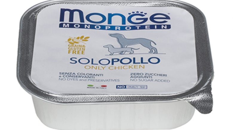 Monge. Solo pollo. 1,30 €, 150 g (8,67 €/kg). Per cani adulti.