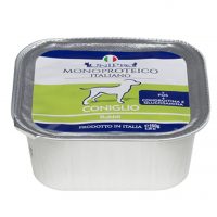 Perché ci piace. È un alimento completo e monoproteico che propone una fonte alternativa di proteine: il coniglio. Fra gli ingredienti ci sono anche: i frutto-oligosaccaridi, fibre prebiotiche preziose per il funzionamento dell’intestino; la condroitina e la glucosamina, importanti invece per la protezione e il benessere delle articolazioni. Prodotto in Italia, non ha conservanti né coloranti. Non è testato sugli animali. Razioni giornaliere suggerite dall’azienda:100-180 g al giorno per cani fra i 2 e i 5 kg, 350 g per animali intorno ai 10 kg di peso.