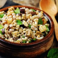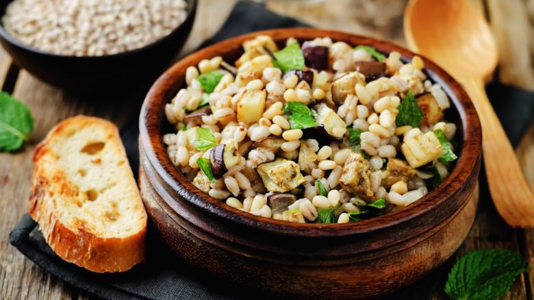 • Pranzo: orzo alle melanzane profumate al peperoncino + bocconcini di pollo