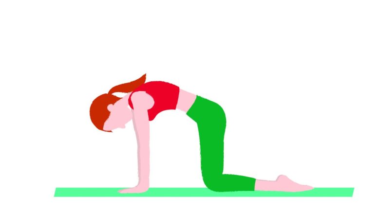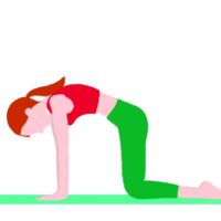 In quadrupedia, con le ginocchia in linea con il bacino e le mani con le spalle. Allinea la schiena, contraendo gli addominali, e stabilizza i muscoli sottoscapolari, che non devono cedere. Inspirando, porta lo sguardo leggermente verso l’alto e apri il petto, avvicinando le scapole tra loro. La schiena si inarca, l’osso sacro punta al soffitto. Tieni la posizione per 5-10”.