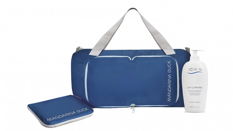 Un regalo utilissimo per chi va in palestra: il borsone sportivo con latte corpo in formato maxi (400 ml) per nutrire la pelle dopo l’allenamento. Perfetto anche per andare alla Spa. Cofanetto Idratazione Corpo Donna di Biotherm e Mandarina Duck (28,27 €).