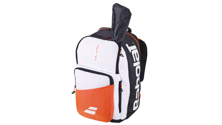 «L’alternativa alla borsa è lo zaino, ideale per chi si fa la doccia a casa e non ha bisogno di portarsi dietro una spugna voluminosa e per chi va al campo in bici o in scooter». Lo zaino ha una tasca posteriore che contiene al massimo un paio di racchette con due zip a chiudersi attorno al telaio (raramente lo zaino è dotato di una foderina che ne protegge l’impugnatura che sporge). Uno zaino da tennis è adatto anche ai giocatori di padel e, in una situazione diversa dallo sport, è possibile riporvi il laptop per andare in università o sul posto di lavoro. Ha diverse taschine chiuse, almeno una tasca elastica esterna per la borraccia.