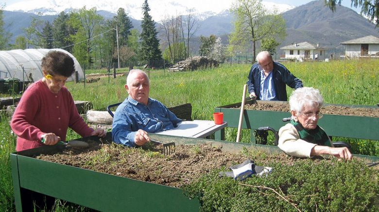 Abbiamo voluto saperne di più e allora eccoci in quella che era una vecchia cascina trasformata nel 1898 in istituto per malattie incurabili. L’ambiente è accogliente. Gli edifici, che sorgono su una collina a 550 metri di altitudine, sono circondati da un grande parco. E c’è anche un orto con dei cassonetti rialzati, dove ognuno è intento a coltivare il suo fazzoletto di terra. «Perché sono rialzati?», chiedo subito. «Per consentire a tutti di seminare, curare e raccogliere le verdure senza doversi piegare. Così anche chi ha problemi alla schiena partecipa alle attività di giardinaggio», risponde Gabriella Pansa, una dei 40 operatori socio-sanitari che lavorano al Rifugio.