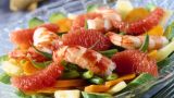 Cottura veloce e condimento semplice per portare in tavola questo colorato secondo con verdure, pompelmo e gamberi