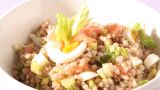 Per gli amanti dei cereali, prepariamo l’insalata di grano al salmone, che possono mangiare anche gli intolleranti al glutine