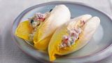 Queste foglie di indivia con crema di ricotta sono delle barchette verdi dal ripieno fresco, ideali per l’aperitivo